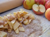 • Jablka nestrouhejte, ale nakrájejte je na tenké plátky, ať se vám těsto jablíčky nerozmočí.