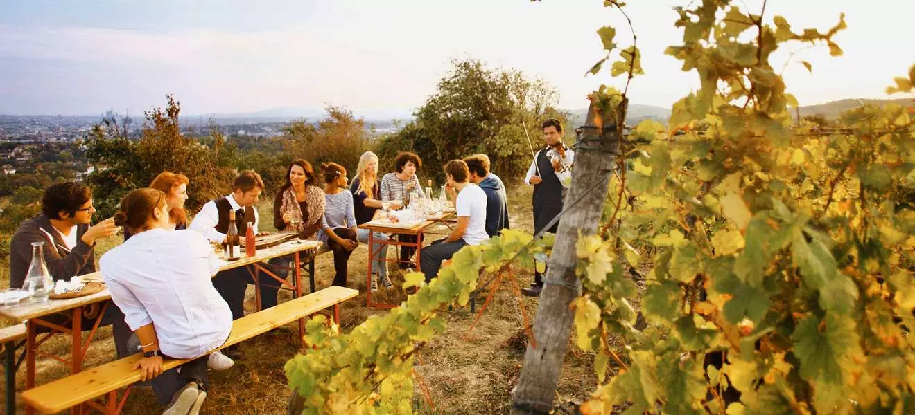 A co že je to heurige? Díky panonskému klimatu (oproti nám studenější zimy a teplejší léta s méně srážkami) a poloze na Dunaji se na 680 hektarech vinic, které zdobí svahy vídeňských kopců, vinné révě daří. Hned u svých vinic mívají vinaři své vlastní hospůdky, heurige. To slovo však neoznačuje pouze vinný šenk, ale také víno současného ročníku, které tak smí být nazýváno vždy jen do 11. listopadu, na sv. Martina.