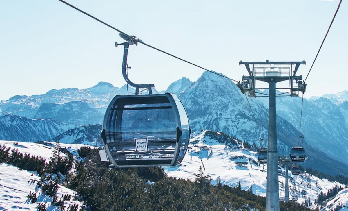 gondolu Zwölferhorn-Seilbahn pro čtyři osoby od firmy Girak, která zde sloužila od roku
