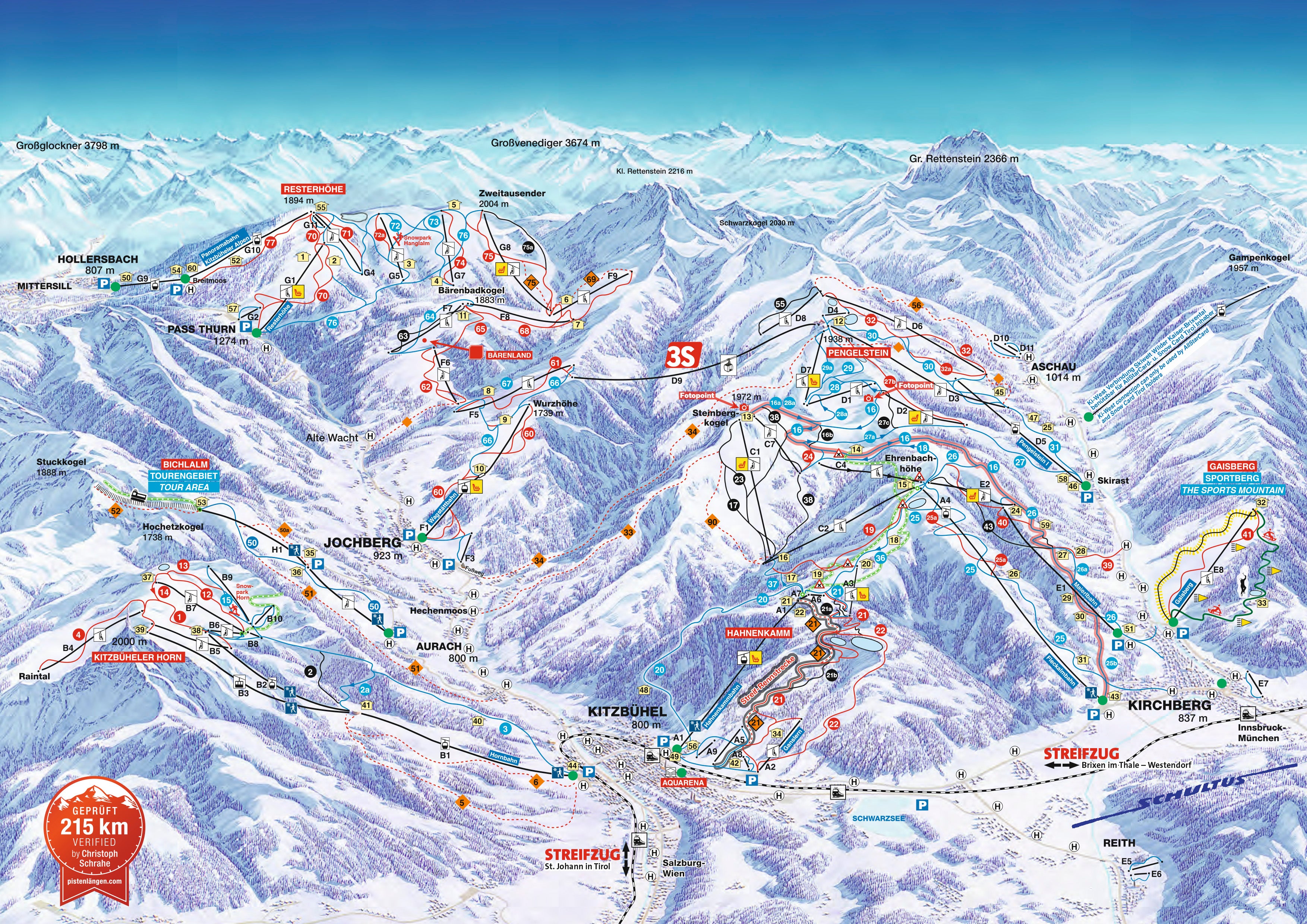 V porovnání s okolními pohořími patří Kitzbühelské Alpy k těm nižším, proto tu také najdete převahu méně náročných sjezdovek se širokými svahy. Díky tomu sem s oblibou jezdí rodiny s dětmi, ale na své si přijdou i zkušení lyžaři. Srdcem celého regionu je městečko Kitzbühel, které těmto Alpám dalo svůj název. Nejvíc proslavily Kitzbühel závody světového poháru sjezdového lyžování, které sem každoročně lákají slavné osobnosti. Závod Kitzbühel Hahnenkamm je považovaný za nejtěžší kvůli extrémně strmé sjezdovce Streif. I vy si tu můžete užít luxusní služby místních podniků anebo přímo obávanou sjezdovku či freeride v hlubokém sněhu.