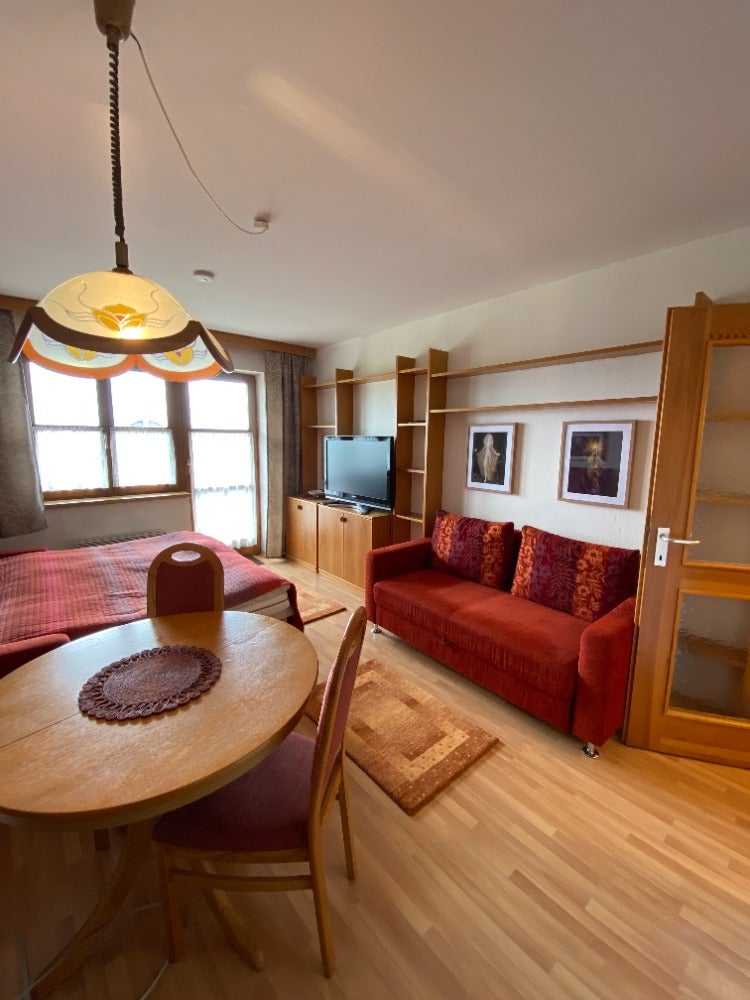 Malý apartmán s obývacím pokojem se skříňovou postelí a rozkládacím gaučem, s kuchyňským koutem, koupelna, WC, chodba, TV. Ideální pro 2 dospělé a 2 děti, max 3 dospělé.