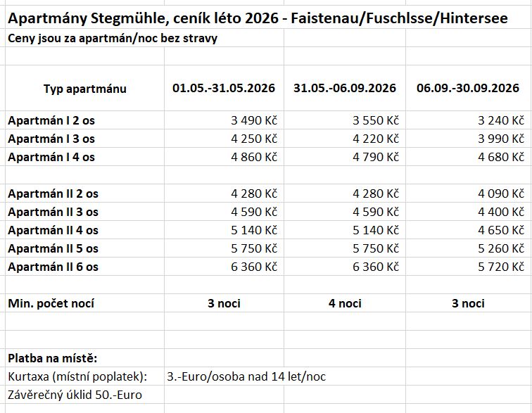 - Fuschlsee 10 minut, Hintersee 4 minuty, Wolfgangsee 20 minut, Salzburg 30 minut