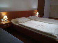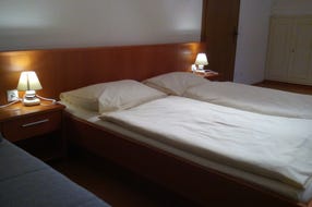 Pohodlně zařízený pokoj s dvojlůžkem, třetí postelí, vlastním WC a sprchou, balkonem a kabelovou televizí (německé kanály).