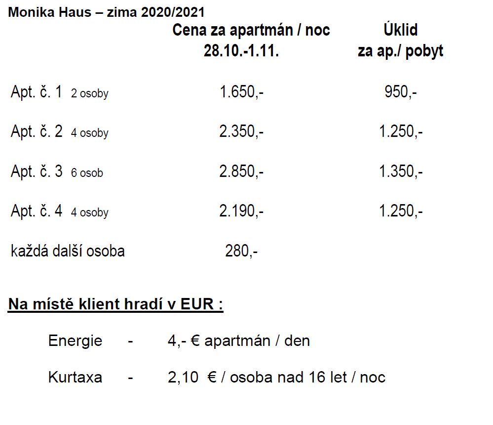 Apartmánový dům má klidnou polohu cca 9 km od nástupní stanice na ledovec, cca 2 km od obchodu, restaurace, banky. Hostům je k dispozici parkoviště u domu, internetové připojení, lyžárna.