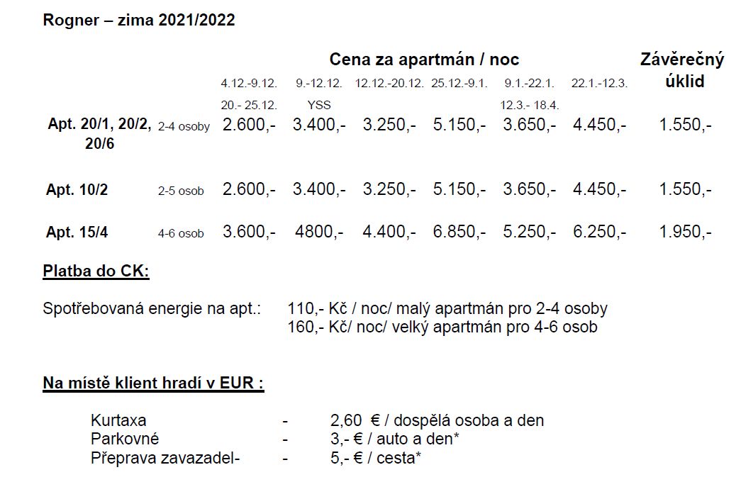 * v celém areálu vesničky Rogner je zákaz parkování u apartmánů a volný pohyb