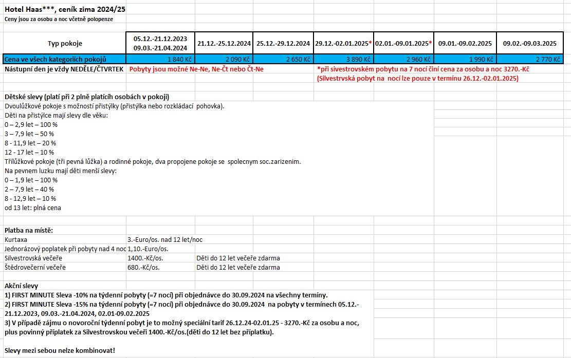 Hotel Haas se nachází v idylickém horském městečku Bad Gastein v části Böckstein, kde si můžete užít skvělou zimní sezónu plnou sněhových radovánek a lyžařských dobrodružství. Hotel Haas je rodinný podnik a domluvíte se zde česky a nabízí moderní a pohodlné ubytování s polopenzí, poskytující vám vše, co potřebujete pro relaxaci a odpočinek po náročném dni na svahu. V hotelu najdete útulnou restauraci, kde si můžete vychutnat regionální speciality a mezinárodní kuchyni.