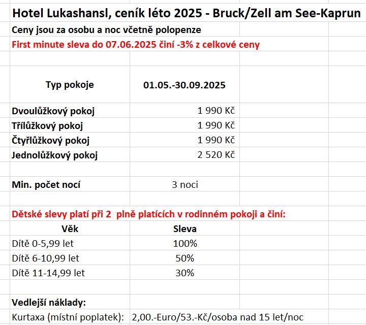 - First minute akce při objednávce do 07.06.2025 sleva -3% z ceny za ubytování!