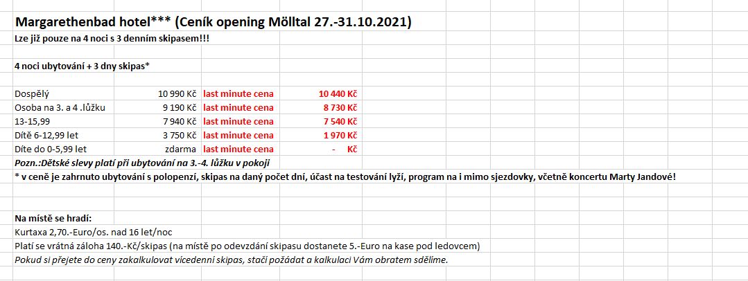 Nabídka ubytování - Ski Test na Mölltalském ledovci 27.10.-31.10.2021. Cena pobytu zahrnuje bohatý program.