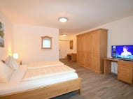 Rodinný pokoj/prázdninový apartmán: Minimální obsazenost 2 dospělí a 1 dítě, maximální obsazenost 5 dospělých. Pokoj/apartmán má obývací pokoj, 2 ložnice - jedna s manželskou postelí a druhá se dvěma samostatnými lůžky, plně vybavená kuchyň, koupelna/sprcha, WC, TV, telefon, trezor, fén, WiFi, TV.