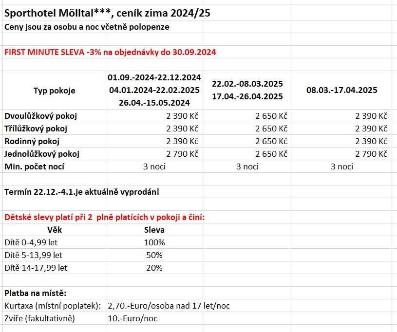 - Ubytování s polopenzí pod Mölltalským ledovcem,