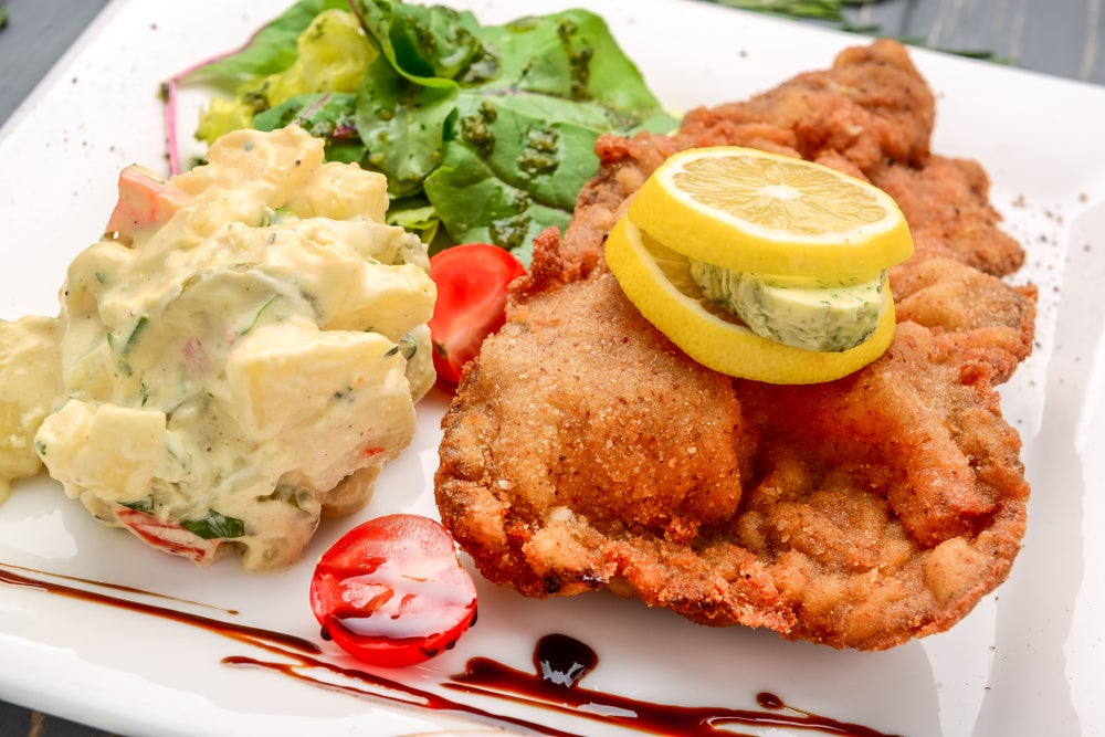 Snad neexistuje člověk, který by neznal tuto proslulou Vídeňskou specialitu a alespoň jednou za život ji při návštěvě Rakouska neochutnal. Pravý Vídeňský řízek se připravuje z nejkvalitnější části telecího masa – části zvané „ořech“. Na talíři ho dostanete naservírovaný většinou s bramborovým salátem a poznáte ho podle toho, že řízek bude přes celý talíř.