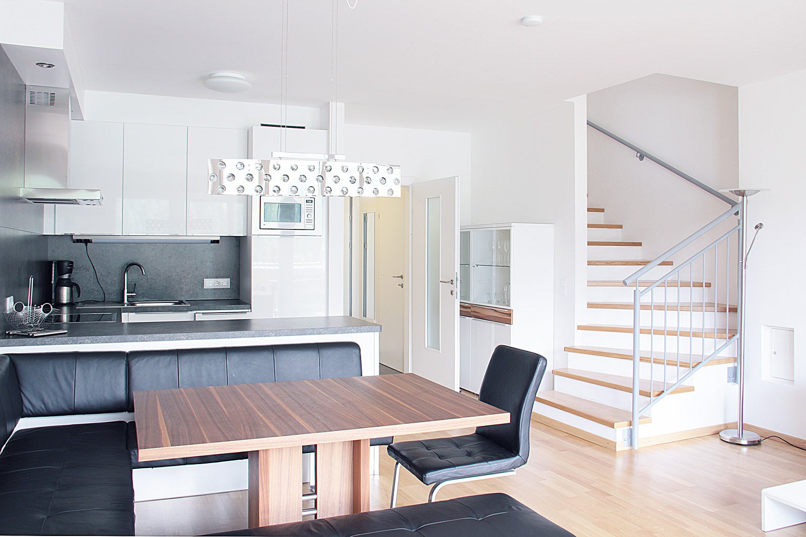 - Přízemí: obývací pokoj s rozkládacím gaučem a kuchyňským koutem (mikrovlnná trouba, kávovar, trouba, myčka, rychlovarná konvice, sporák s keramickou deskou), SAT-TV, koupelna s WC, internetové připojení, terasa. 1.patro: 3x ložnice (2 ložnice s manželskou postelí a třetí s patrovou postelí), každá ložnice má sprchu a WC, balkon. infrasauna