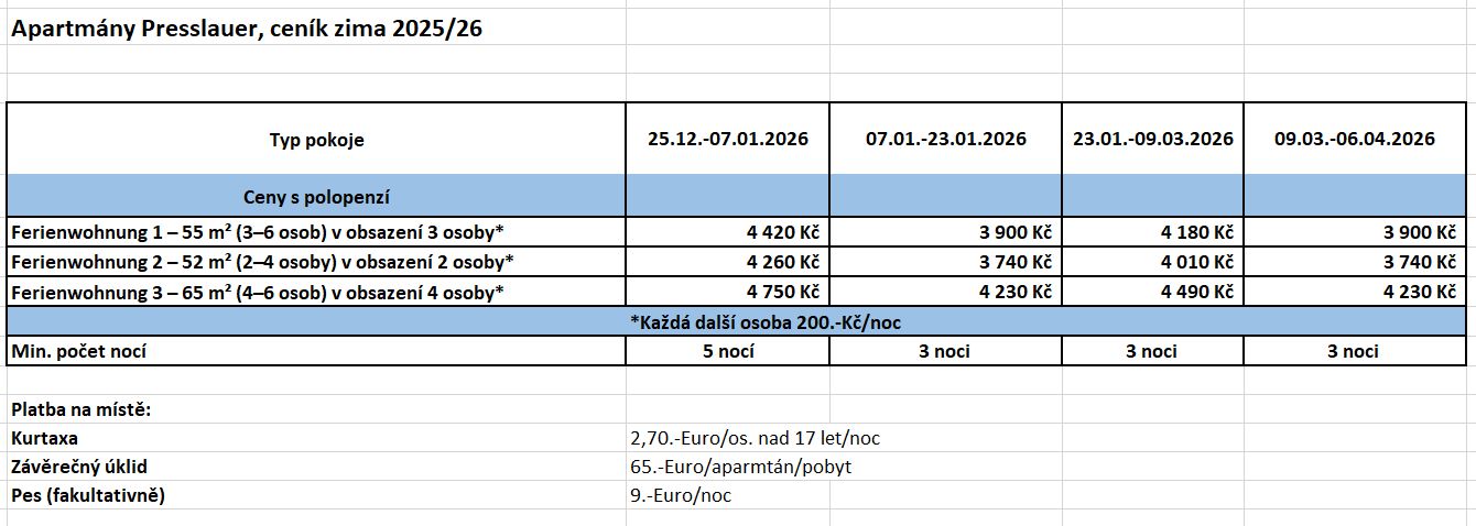 - Ubytování v apartmánu dle výběru