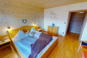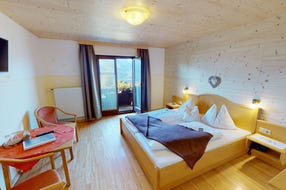 Příjemný pokoj s parketovou podlahou, SAT-TV, rádiem, Wi-Fi, trezorem, sprchou/WC a balkonem s výhledem na Nassfeld.