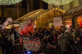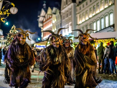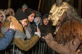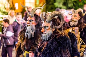 Nechte se postrašit! Rakouskou hrůzostrašnou postavou Krampus. Napůl člověk, napůl kozí démon!