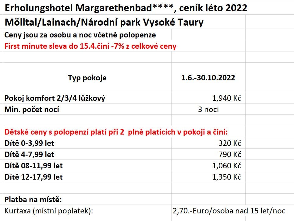 Ceník léto 2022: