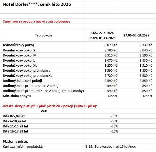 V hotelu Dorfer udáváte tempo sami: ať už jde o turistiku, lyžování nebo relaxaci –v údolí Grossarltal v Salcbursku, v srdci lyžařského střediska Ski amadé, zažijete dokonalou kombinaci dobrodružství, aktivity a relaxace. Děti si zamilují bazén, hřiště a zoo s možností kontaktu se zvířaty (mazlící zoo), zatímco vy si užijete alpskou svobodu.