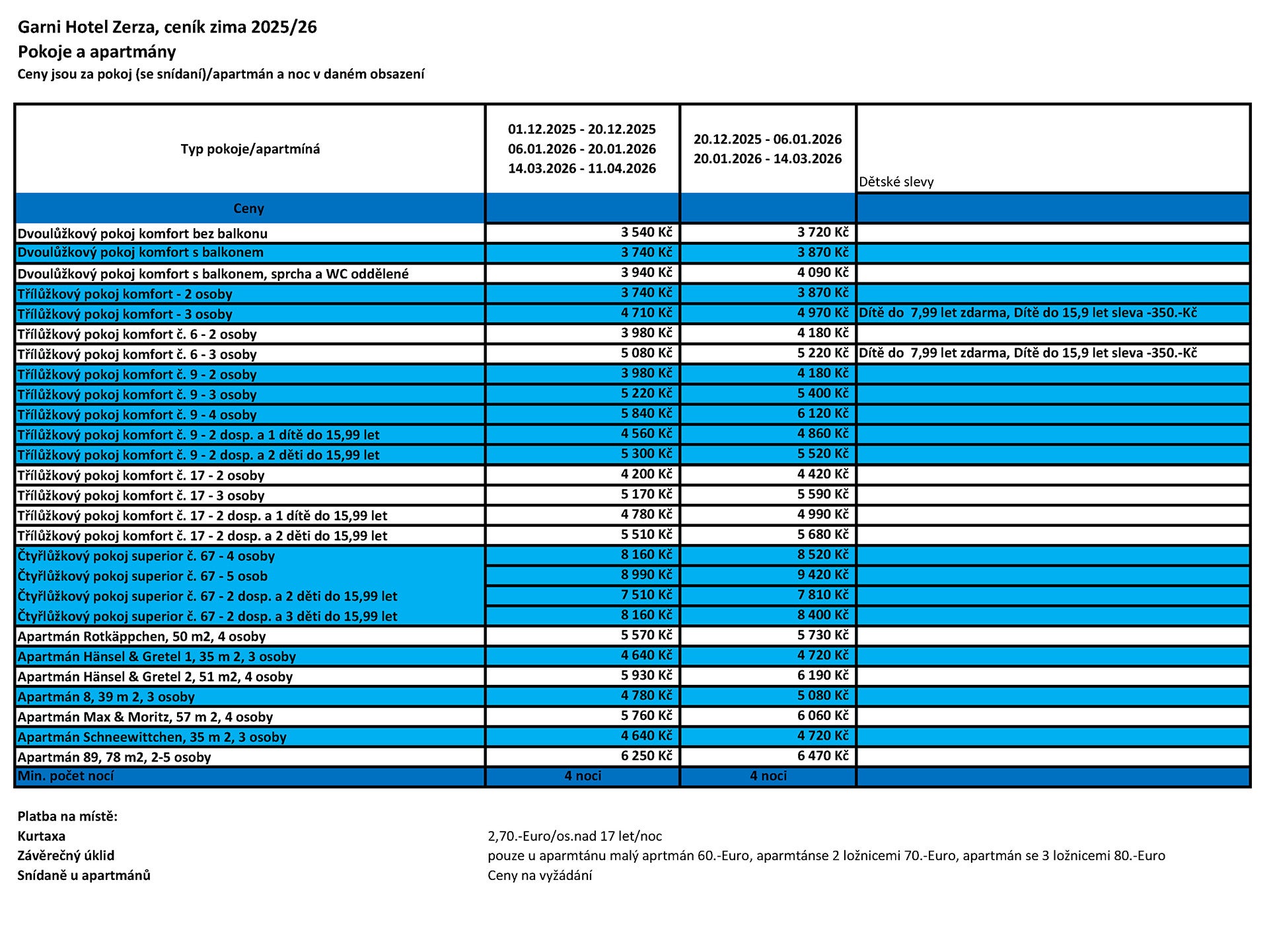 - Ubytování v krásných apartmánech bez stravy (s možností doobjednání snídaní)