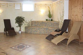 Wellness: Wellness zóna se saunou, bylinkovou parní saunou a relaxační místností.