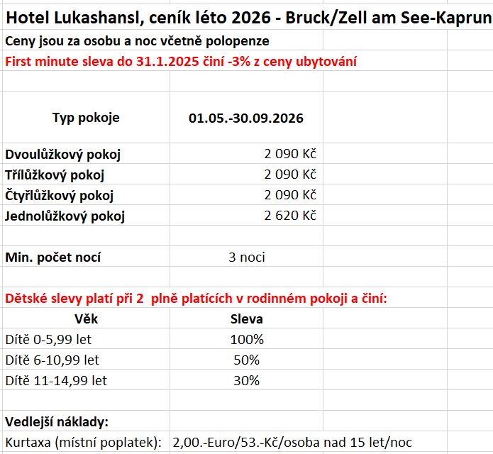 - First minute akce při objednávce do 31.1.2026 sleva -3% z ceny za ubytování!