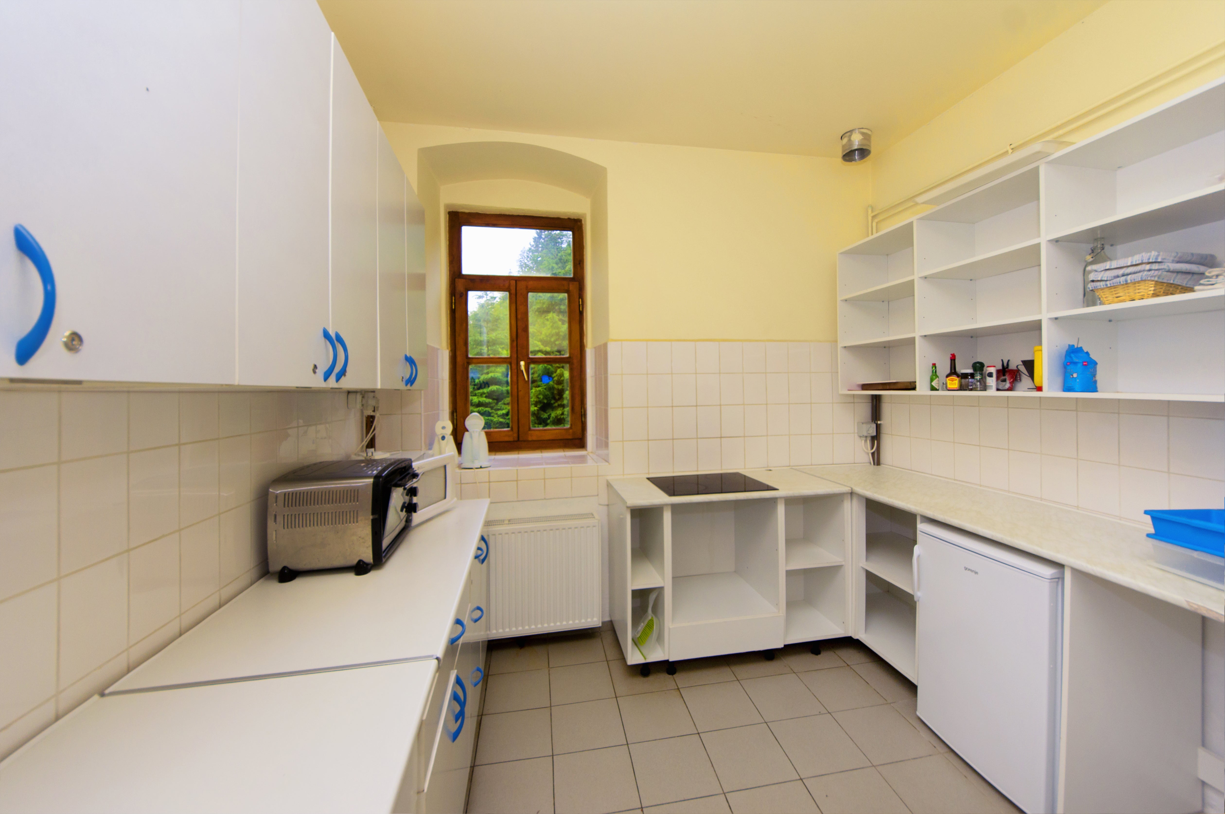Pokoj č.2: Pokoj je orientován na západ a vybaven 1 patrovou postelí, nabízí tak místo pro 1-2 osoby. Součástí pokoje je skříň, stůl se židlí. Koupelna (nesdílená) se sprchou záchodem a umyvadlem se nachází na patře (naproti pokoje).