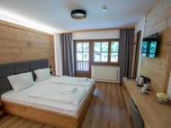 Dvoulůžkový pokoj - cca 22 m², max. 2 dospělí + 1 dítě v dětské postýlce (do 2,9 let). Pokoje jsou zařízeny nábytkem z masivního dřeva, částečně s balkonem.