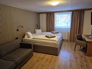 Rodinný pokoj 2+2: pro 3 - 4 osoby, s manželskou postelí a 2 přistýlkami nebo palandou. Minimální kapacita: 2 dospělí + 1 dítě (nebo 3 dospělí), maximální kapacita: 4 dospělí.