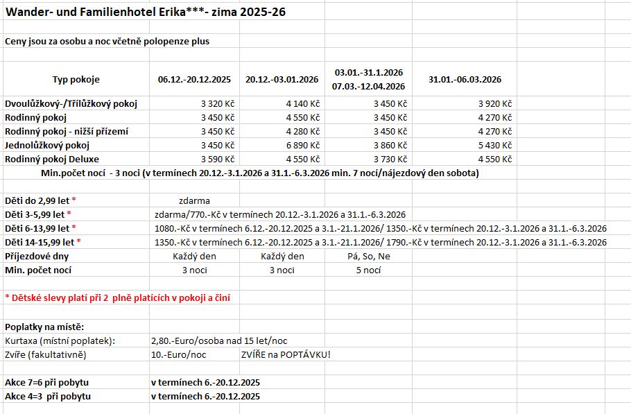 - Denní „svačina pro lyžaře“ od 15:30 do 17:00 (bez nápojů)