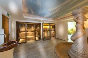 Wellness a relaxační zóna se soft saunou, finskou saunou a relaxační místnost.